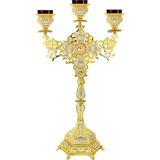 Bicolor Trikantili Lamp – Three-Candle Ecclesiastical Lamp with Cross (27.5")