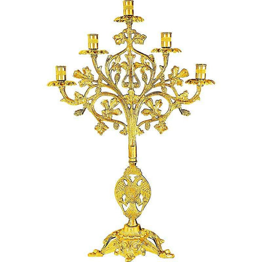Gold-Finished Ecclesiastical Lamp – Five-Candle Vine Design (20.5")