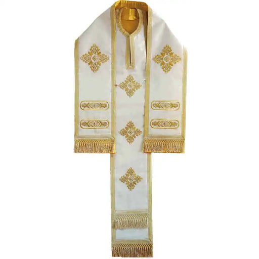Priest Stole - Omophorion with Epitrachelion – White with Gold Cross Embroidery