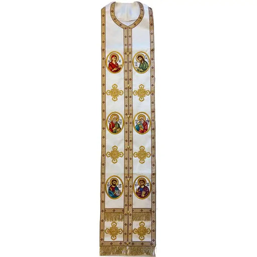 Priest Stole - Omophorion with Epitrachelion – White with Gold Embroidery and Saints