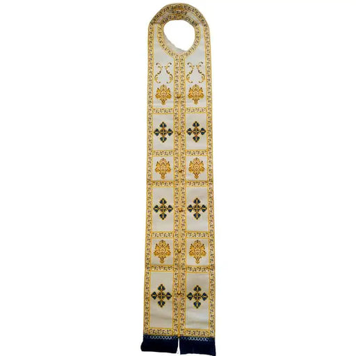 Priest Stole - Epitrachelion – White with Gold Floral and Cross Embroidery