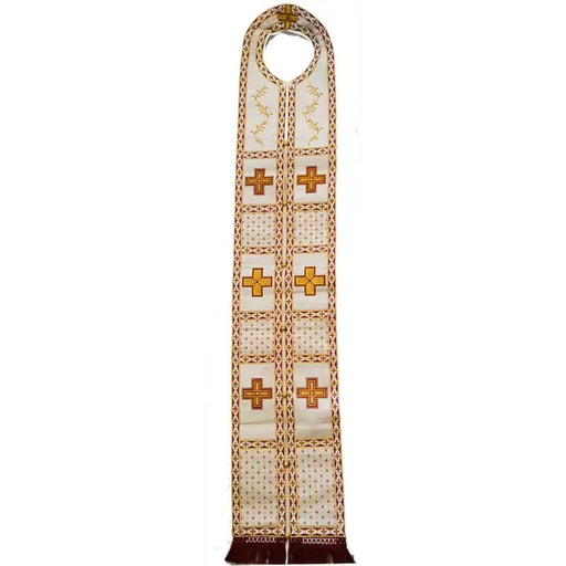 Epitrachialium - Epitrachelion – White with Gold Burgundy Cross Panels