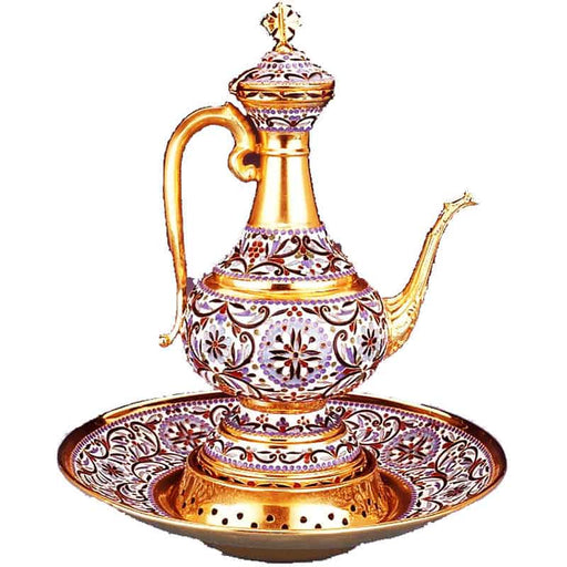 Handmade Enamel Cherouvoskesto (Smaltino) – Ornate Orthodox Washing Vessel Set