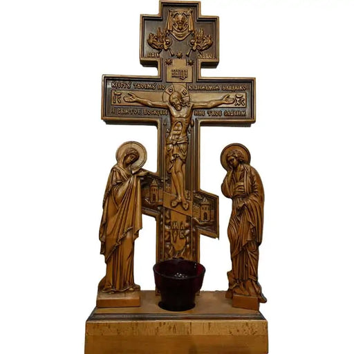 Orthodox Wooden Crucifixion Iconostasis with Candle Holder