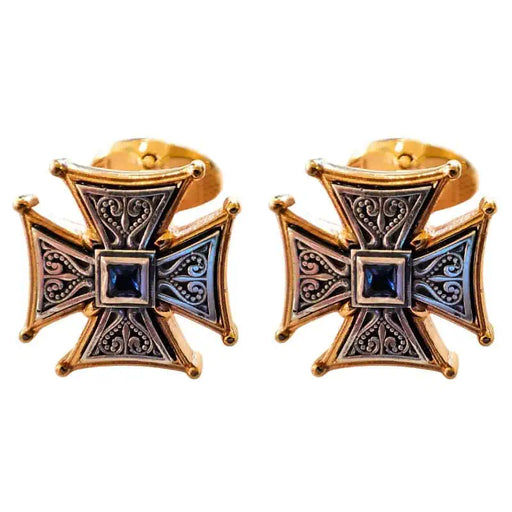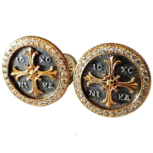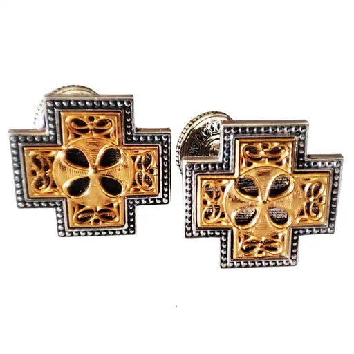 Maniketokuba Byzantine Cross Cufflinks – 925 Silver with Gilded Detail and Relief Carving