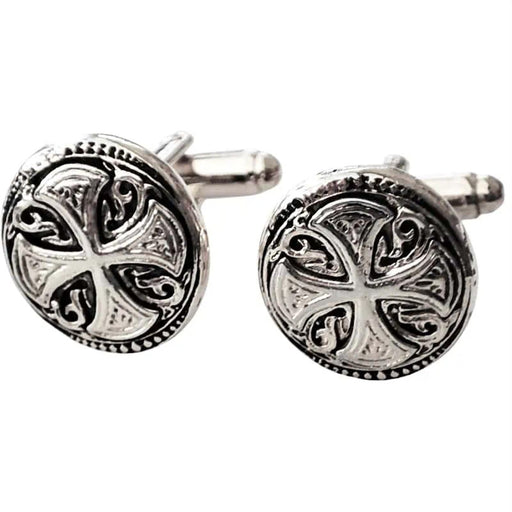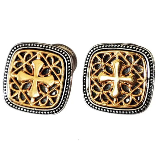 Silver Cufflinks – Ornate Cross Design with Gold Accents and Embossed Detailing