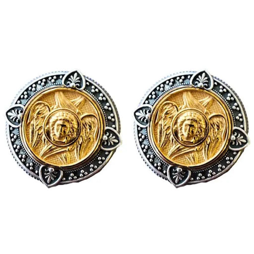 Silver Cufflinks – Embossed Carving of Archangel Michael with Gilded Accents