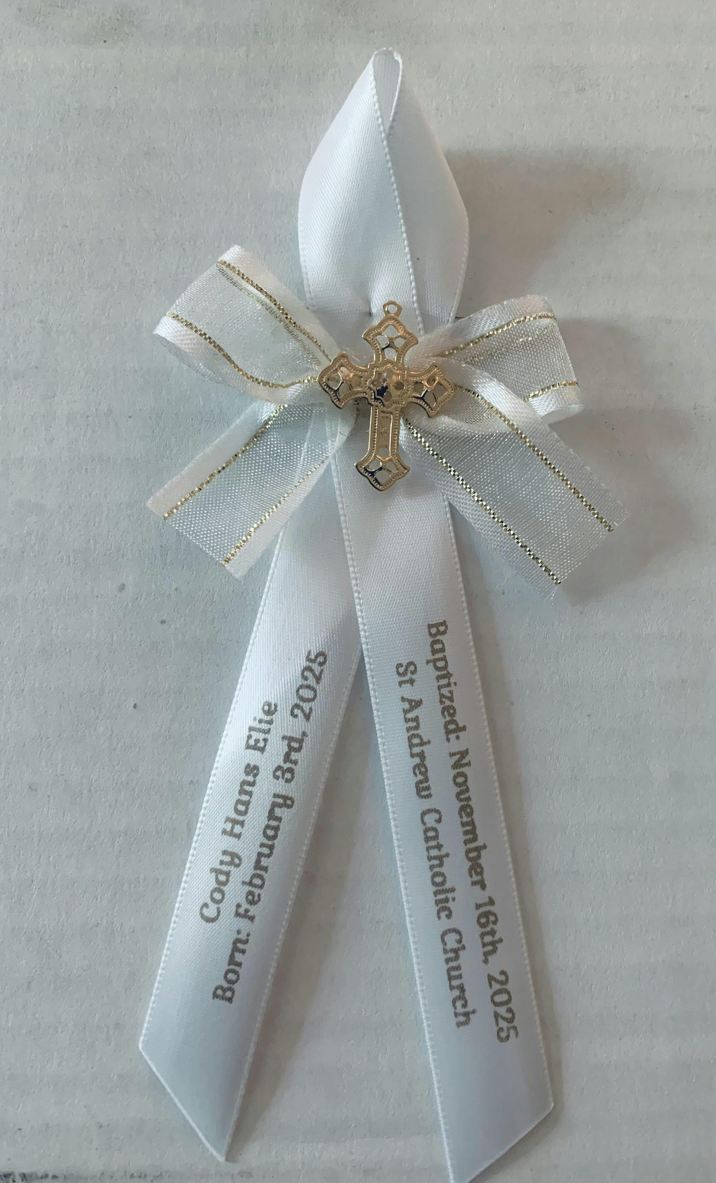 Want to add special title ribbons (i.e., Godfather, Godmother, Mother, Father, etc.) to some of your witness pins? Order special title ribbons HERE.