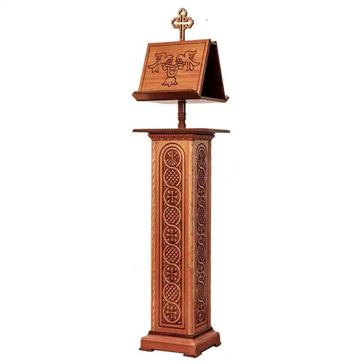 Hand-Carved Orthodox Chanter Stand – Wood with Cross Top