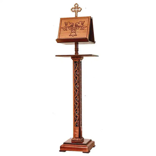 Hand-Carved Wood Chanter Psalter Stand with Cross Top