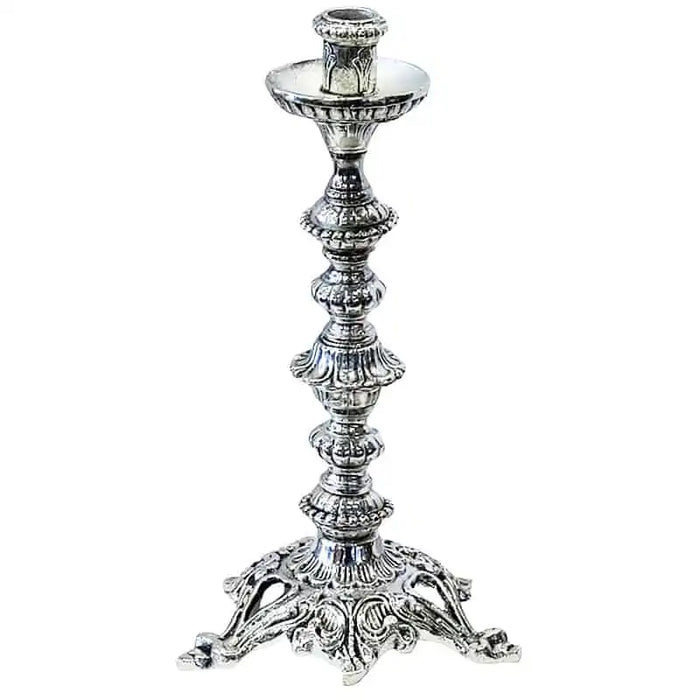 This elegant silver-plated bronze candlestick features a carved unicorn motif, making it an ideal addition to any sacred space, chapel, or devotional corner. Crafted with care from solid bronze and finished in gleaming silver, it combines classic Orthodox artistry with timeless quality.