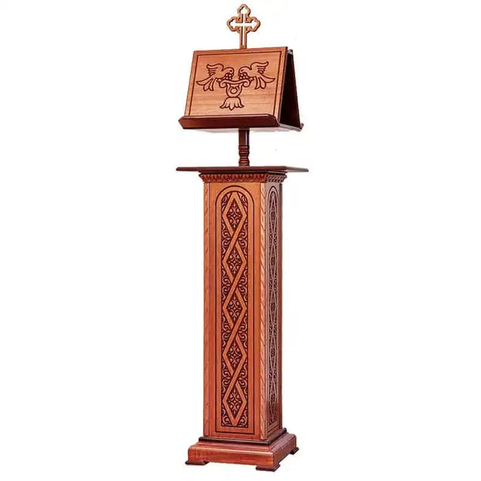 (approximately 13.8" x 13.8" x 66.9") - Design: Carved column body with engraved double-headed eagle on the bookrest
