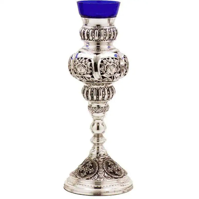 The “Candelabrum of the Holy Bank” is also known as the Candelabrum of the Holy Altar (Greek: Κανδήλα ή Κανδηλοστάτης της Αγίας Τραπέζης). This is a ceremonial candelabrum (or pair of candelabra) placed directly on the Holy Altar Table—also known as the Holy Bank (Greek: Ἁγία Τράπεζα), the most sacred area in an Orthodox church. These candelabra are used to illuminate the Holy Altar, especially during the Divine Liturgy and other sacramental services. The flames symbolize: the light of Christ present in the Eucharist. Often, two candelabra are placed symmetrically—one on each side of the Tabernacle or Gospel Book. The kandila (kandili) is typically made of brass, bronze, or gilded metal and can hold 1, 3, 5 or 7 candles.