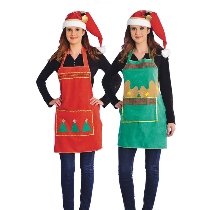 Add festive flair to your holiday cooking and baking with this cheerful 2-piece Christmas apron set. Featuring vibrant seasonal designs—one in red with Christmas trees, the other in green with a pudding motif—each apron is crafted from soft fabric and finished with decorative stitching.