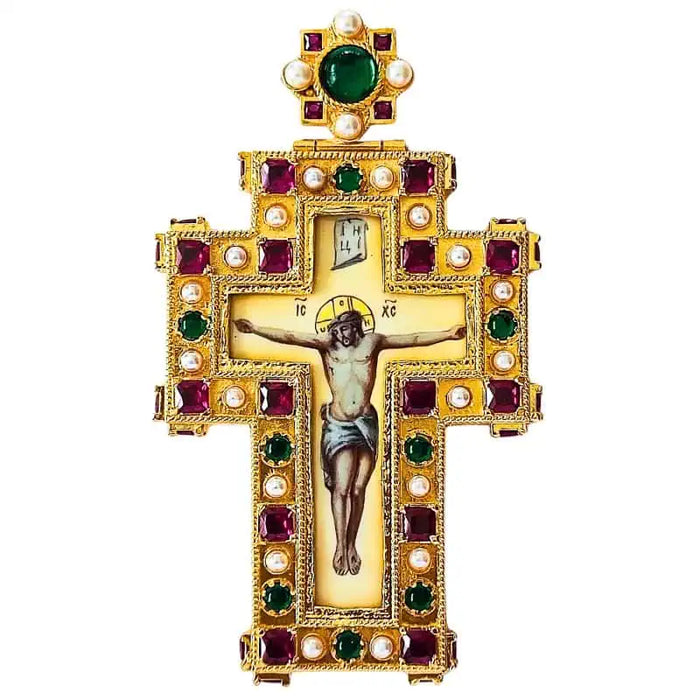 An exquisite and imposing pectoral cross, handcrafted in Greece with reverence for Orthodox tradition.