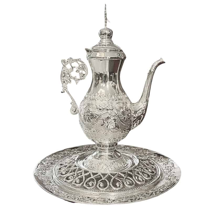 This exquisite silver ecclesiastical vessel, known as the Hernivoxysto, is a traditional two-piece set consisting of a basin and a jug. It is used by Orthodox bishops or high priests for ceremonial handwashing before the Divine Liturgy and Holy Communion. Handcrafted with reverence and detail, this sacred item symbolizes purification and spiritual readiness.