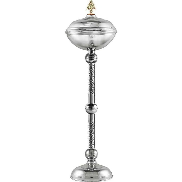This anti-tarnish finish helps preserve the purity and presentation of the prosphora (offering bread) or antidoron. The elevated structure and secure design ensure hygienic handling and proper veneration within the church setting.