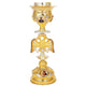 The “Candelabrum of the Holy Bank” is also known as the Candelabrum of the Holy Altar (Greek: Κανδήλα ή Κανδηλοστάτης της Αγίας Τραπέζης). This is a ceremonial candelabrum (or pair of candelabra) placed directly on the Holy Altar Table—also known as the Holy Bank (Greek: Ἁγία Τράπεζα), the most sacred area in an Orthodox church. These candelabra are used to illuminate the Holy Altar, especially during the Divine Liturgy and other sacramental services. The flames symbolize: the light of Christ present in the Eucharist. Often, two candelabra are placed symmetrically—one on each side of the Tabernacle or Gospel Book. The kandila (kandili) is typically made of brass, bronze, or gilded metal and can hold 1, 3, 5 or 7 candles.