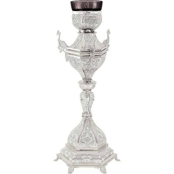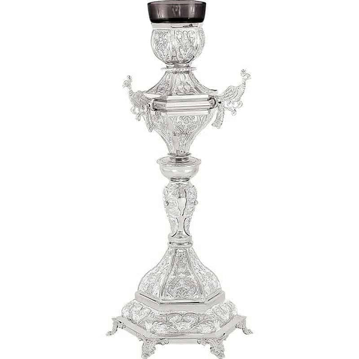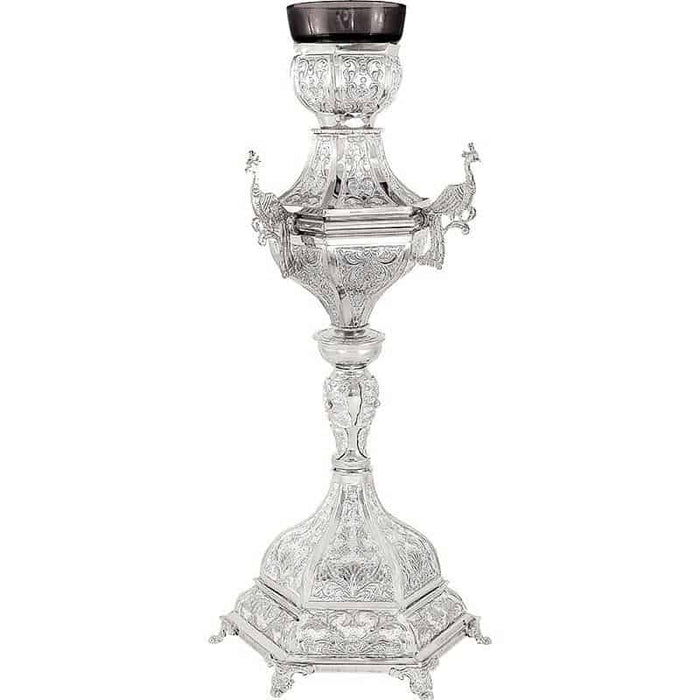 The “Candelabrum of the Holy Bank” is also known as the  Candelabrum of the Holy Altar (Greek: Κανδήλα ή Κανδηλοστάτης της Αγίας Τραπέζης). This is a ceremonial candelabrum (or pair of candelabra) placed directly on the Holy Altar Table—also known as the Holy Bank (Greek: Ἁγία Τράπεζα), the most sacred area in an Orthodox church. These candelabra are used to illuminate the Holy Altar, especially during the Divine Liturgy and other sacramental services. The flames symbolize: the light of Christ present in the Eucharist. Often, two candelabra are placed symmetrically—one on each side of the Tabernacle or Gospel Book.