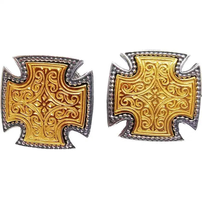 Silver Cufflinks with Ornate Cross Design and Gold Gilding