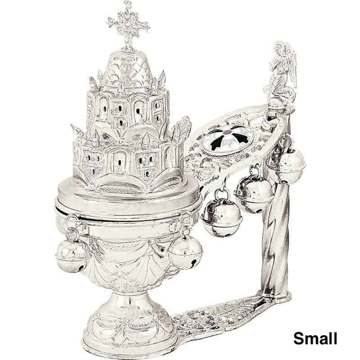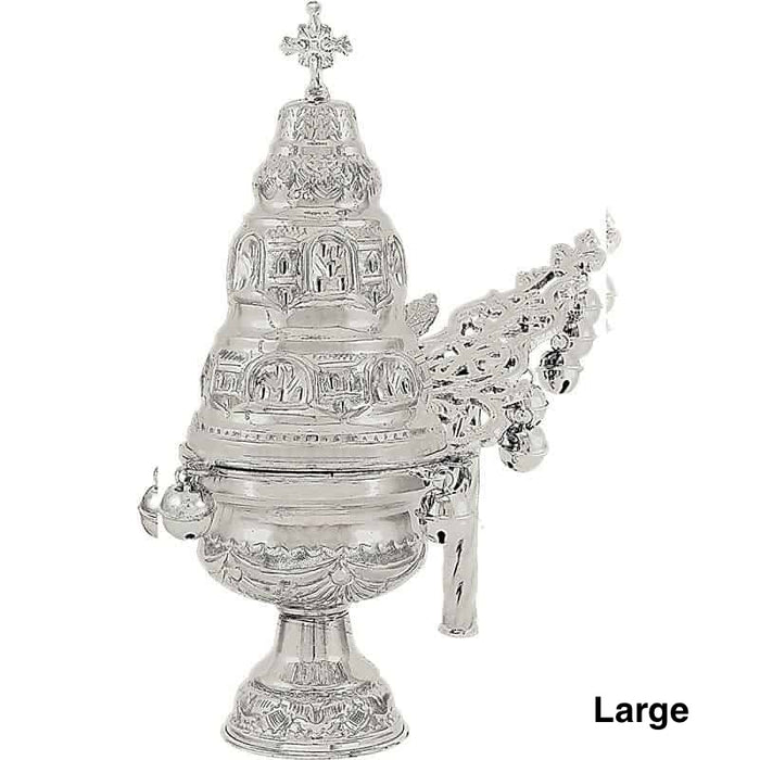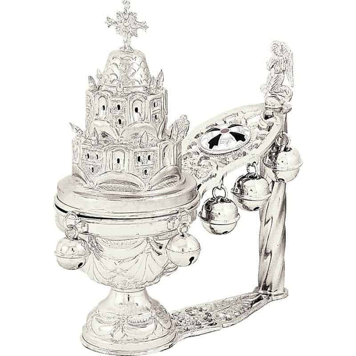 The ecclesiastical censer is a sacred vessel of the Holy Altar, used by the priest to incense the Holy Gifts, the faithful, and the icons of the Saints.