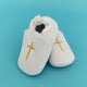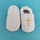 White Baptism Baby Shoes with Gold Cross Embroidery – Soft Sole Christening Shoes